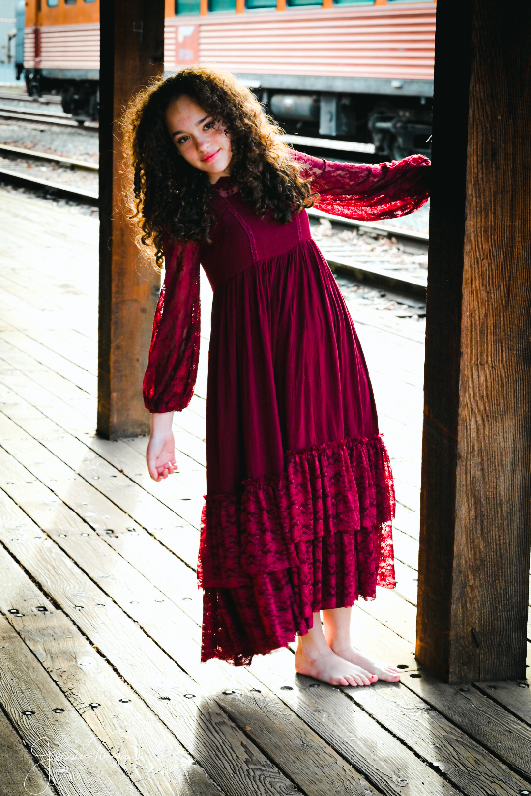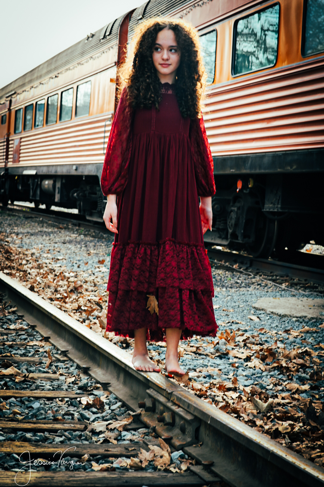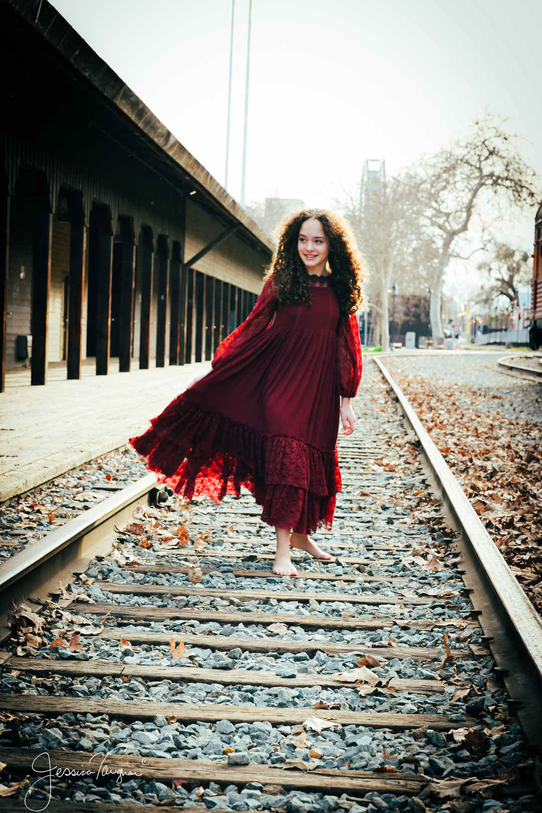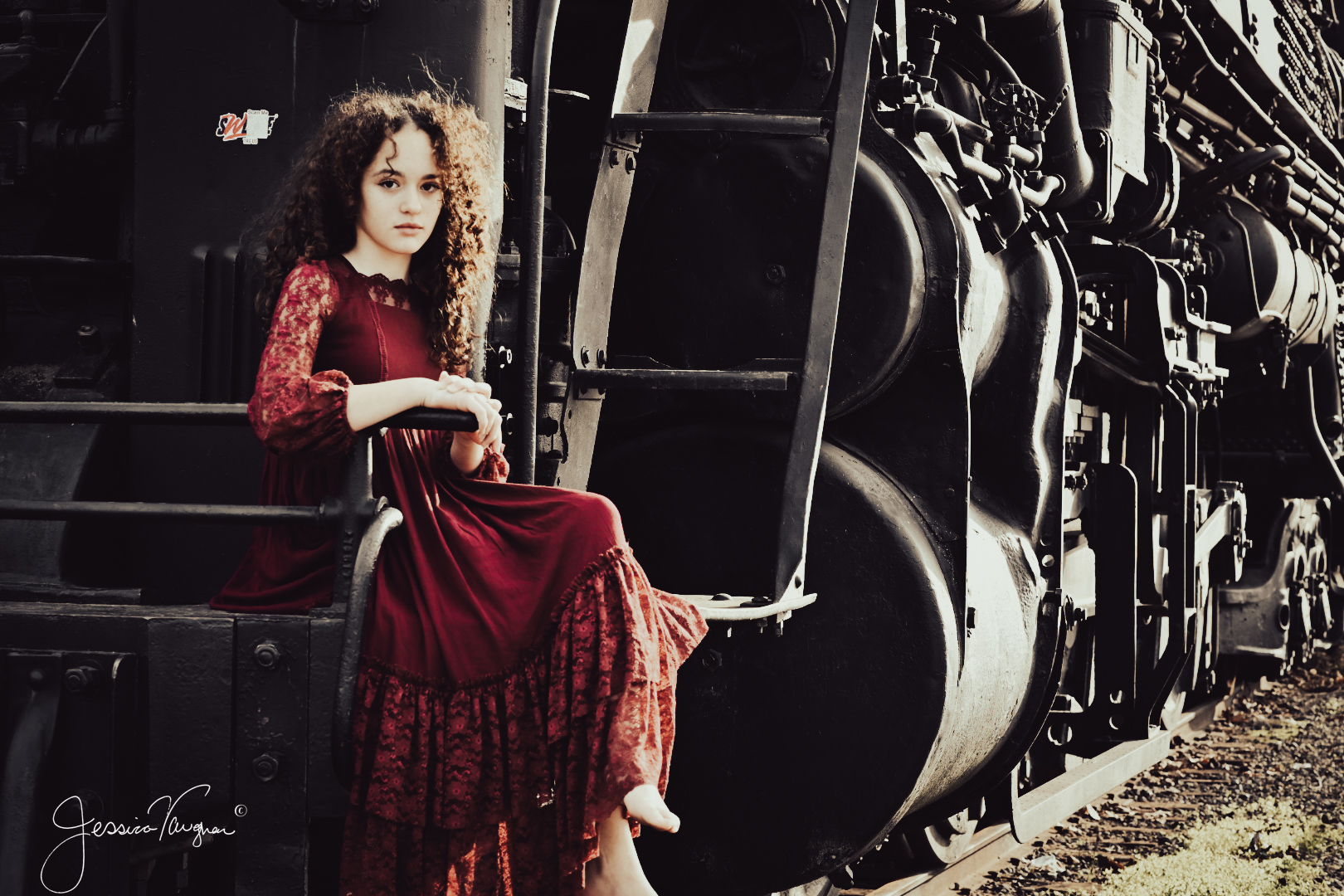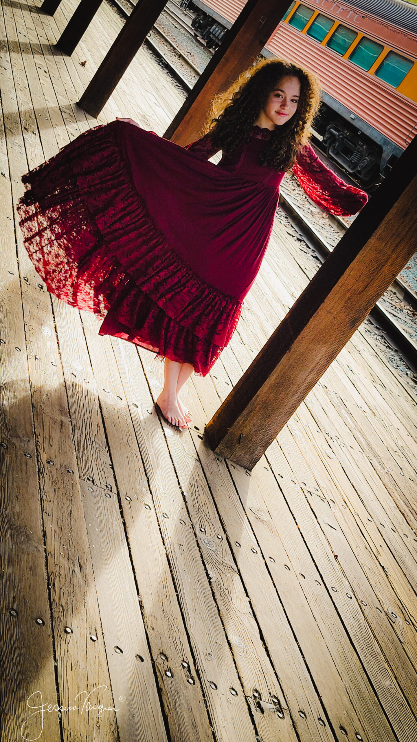 The series below came after we both contracted covid and we desperately needed out of the house once our quarantine was over. I purchased this dress with high hopes of a beach shoot in San Francisco, but life intervened and that did not happen. Hindsight is a beautiful thing though because now seeing the dress shot against the backdrop of trains how could it ever have been anywhere else.  We love Sacramento the food and atmosphere are like nowhere else while still being relaxed and family friendly. And having the chance to see trains up close and personal like this is a unique and slightly terrifying experience. Remember these massive locomotives are part of the railroad museum so she was safe the entire shoot.